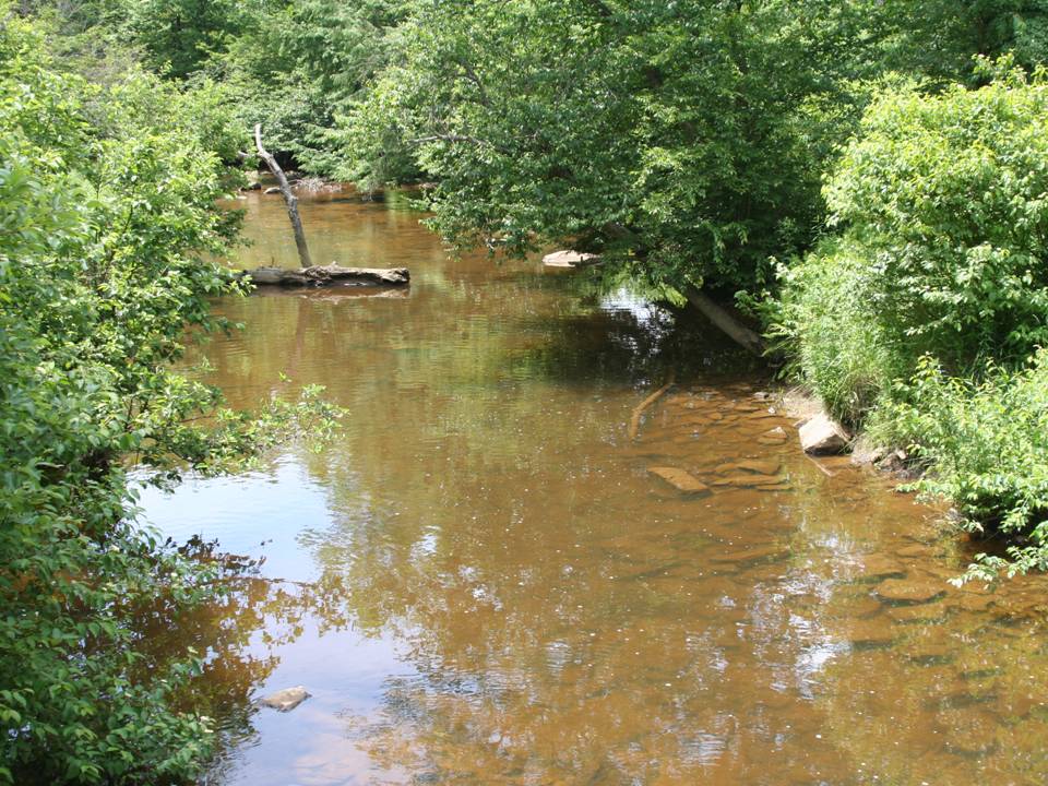 Photo 1 of Casselman River, MD Acid Mine Drainage in Casselman River, MD. AMD rivers are often stained orange from iron that dropped out of the water after leaving the mine.