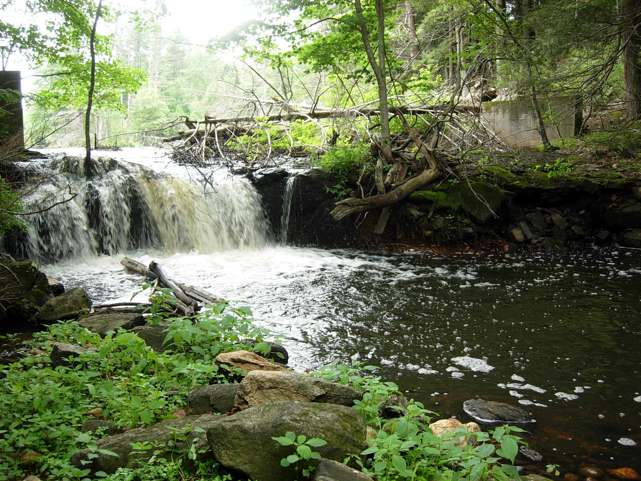 Photo of the dam to be removed on Hamant Brook in Massachusetts.