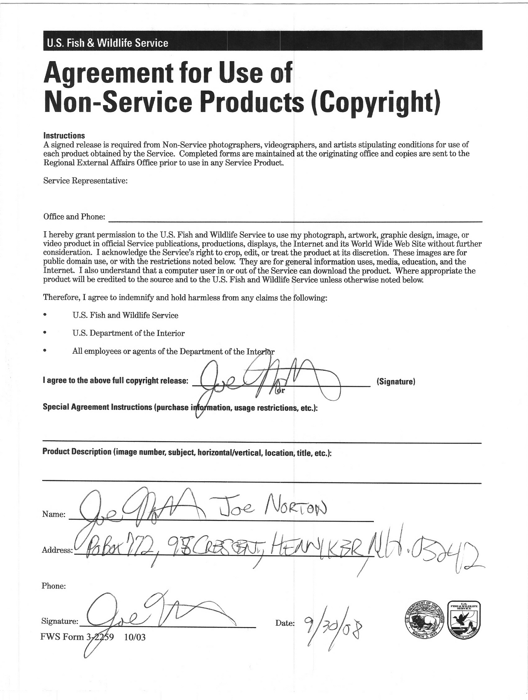 Photo release form for Indian Stream, New Hampshire