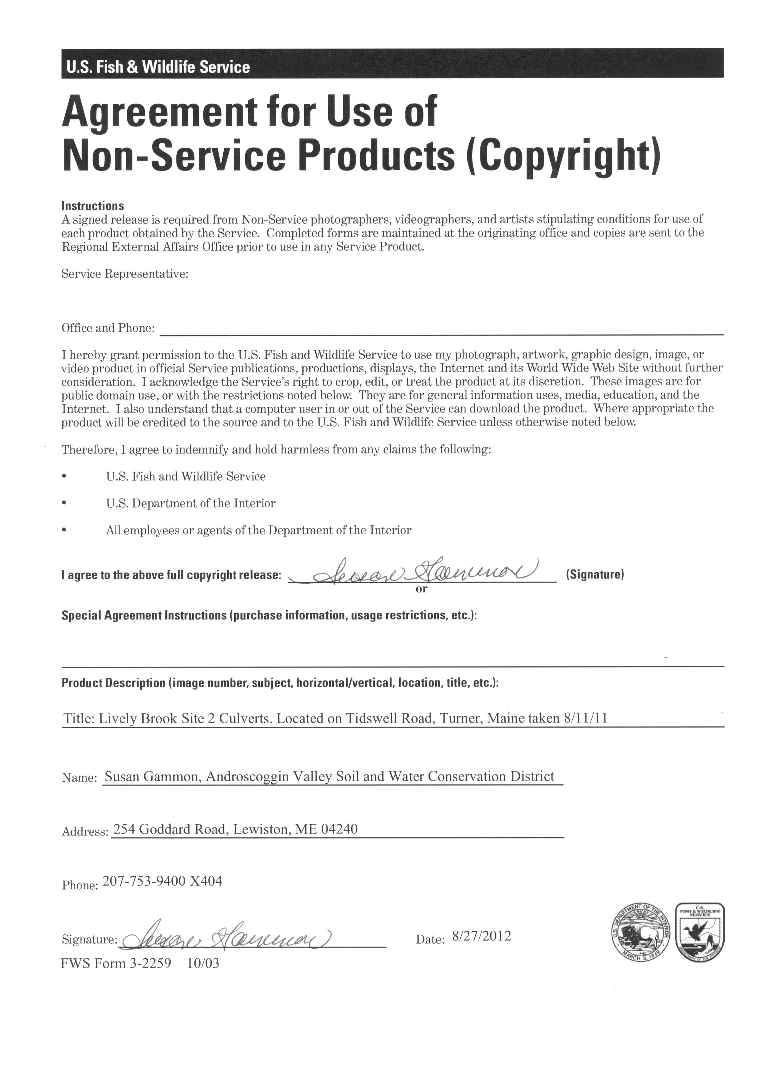 Photo Release Form for Restoring Connectivity in the Sunday River and Martin Stream, Maine
